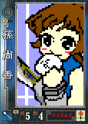 あと。 雑だけど、遊んでみた。だって、時間無いんだもーん。(時間あってもめんどくさいw) 計略は肉まん投下。 もと絵はこれ。相変わらず、雑にドットをポチポチ。 楽しいけど、たまに気が狂いそうになる。 長らく放置していたものを、雑とはいえようやく完成できたので、今日はいい日だ。 あ、眉毛書き忘れてたよ…。でも無くてもよかったかな~。 |